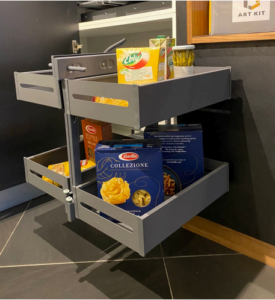 Notre production repose sur des îlots robotisés et des machines technologiquement avancées, permettant la création d’éléments au design fonctionnel et raffiné. Nos solutions sont conçues pour répondre aux besoins spécifiques de chaque client, en valorisant l’intérieur des meubles par une optimisation intelligente des espaces. Nous proposons ainsi une large gamme de produits, tels que des tiroirs, paniers, colonnes extractibles, mécanismes pivotants, poubelles, et bien plus encore.